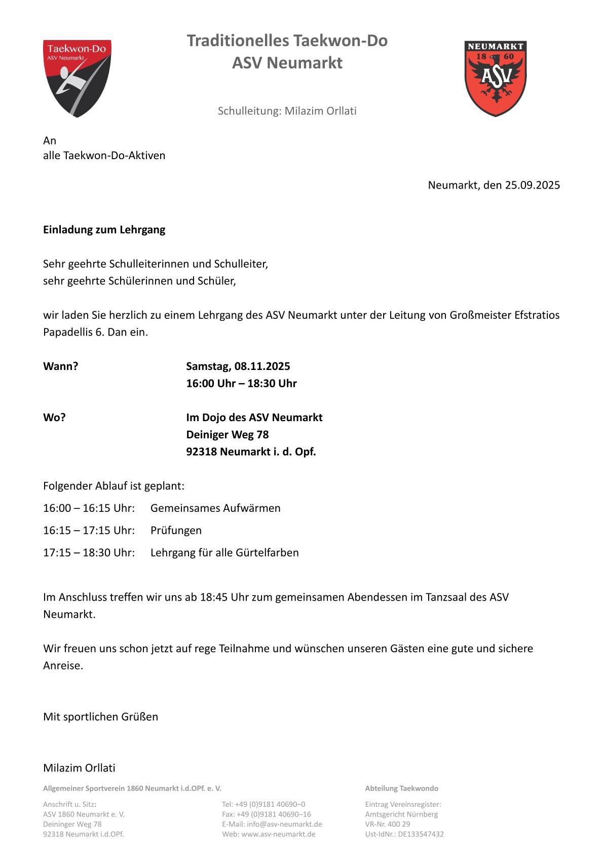 Treffpunkt ist um 12:30 Uhr im Black Belt Center Erlangen. Nach einem kurzem Lehrgang fahren wir gemeinsam zur Vorführung.