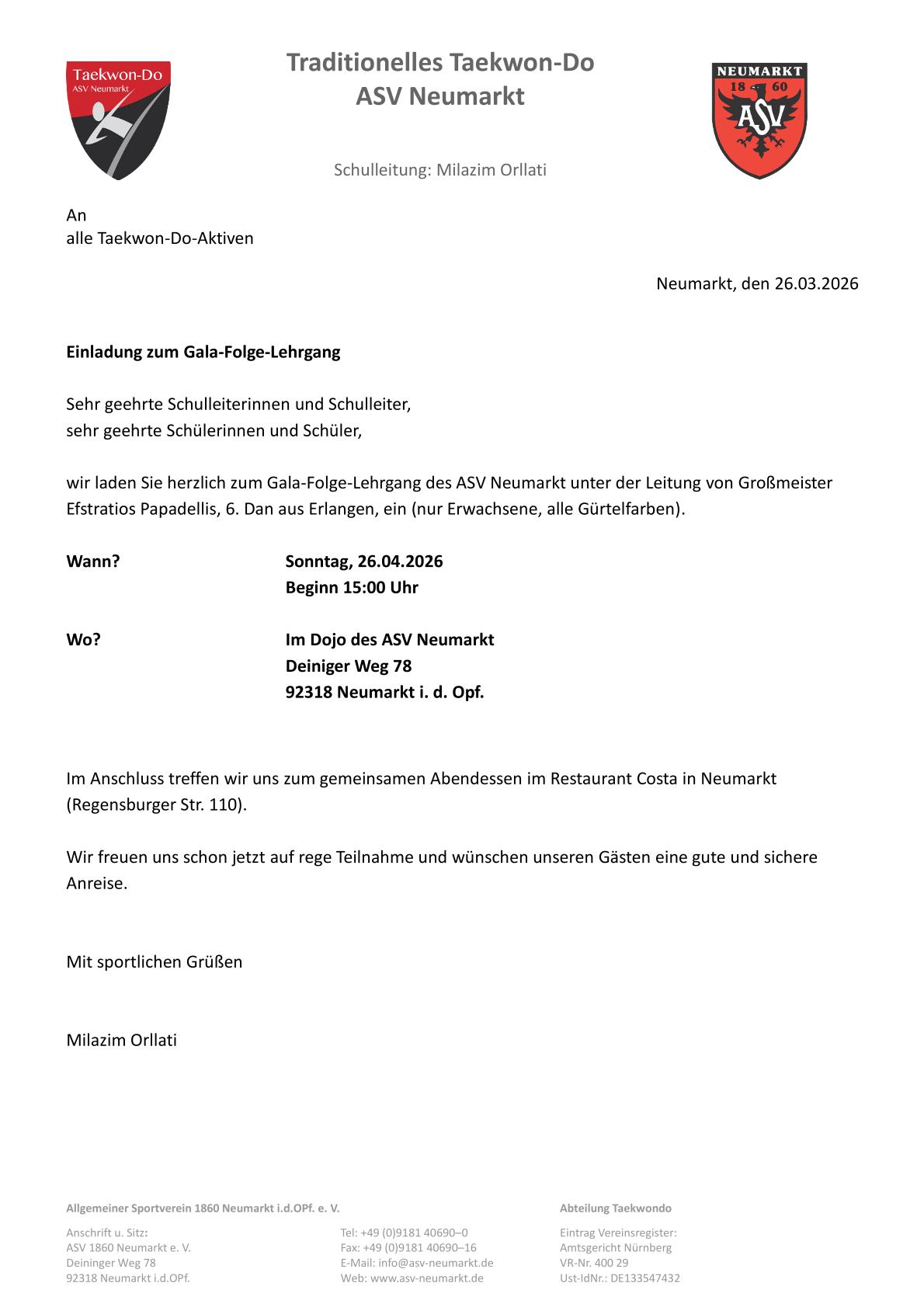 Lehrgangsleitung: Günter Witzig, 6. Dan.